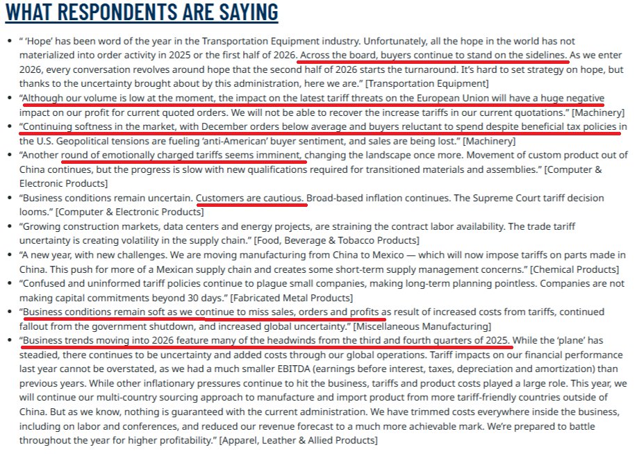 Respondent commentary was not as upbeat as we would have guessed given the strong ISM Manufacturing PMI for January. Concerns about weak sales and another round of tariffs.