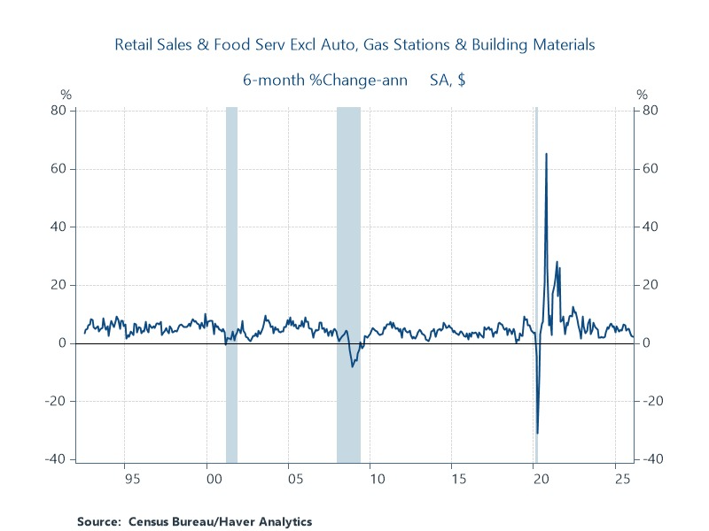 Is inflation a problem? Sure. But, it is not like nominal consumers' spending is doing well in the first place. Over the six months ending in February, control retail sales and food services are up just 2.1% annualized. That's pretty anemic.