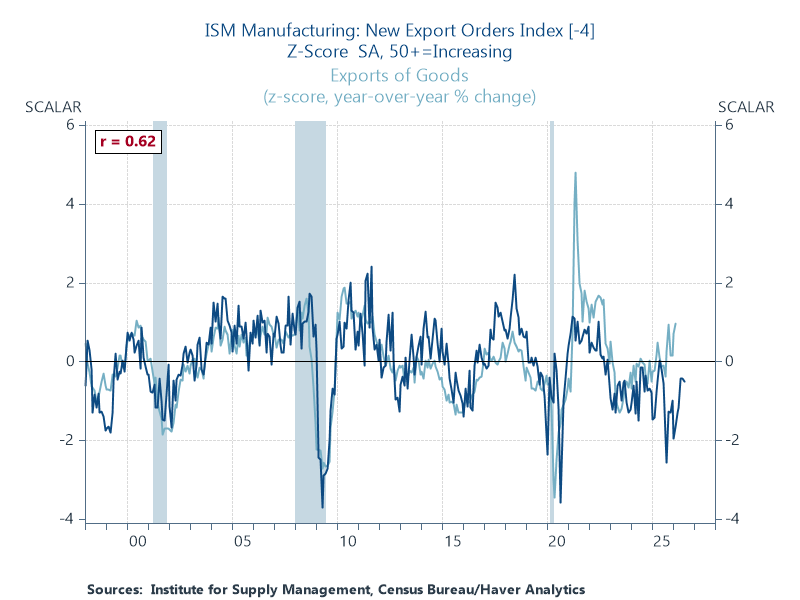 Sorry, but the strong growth in US exports over the last two months will not last. First, export orders have been contracting to begin with. Second, the shock to global energy markets hits US trading partners especially hard.